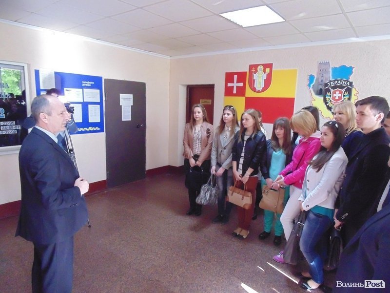 Начальник Луцького міськвідділу УМВС Василь Марчишак провів для студентів екскурсію відділком. Показали камери, роботу слідчих та розповіли, що в міліції ніколи не б’ють.