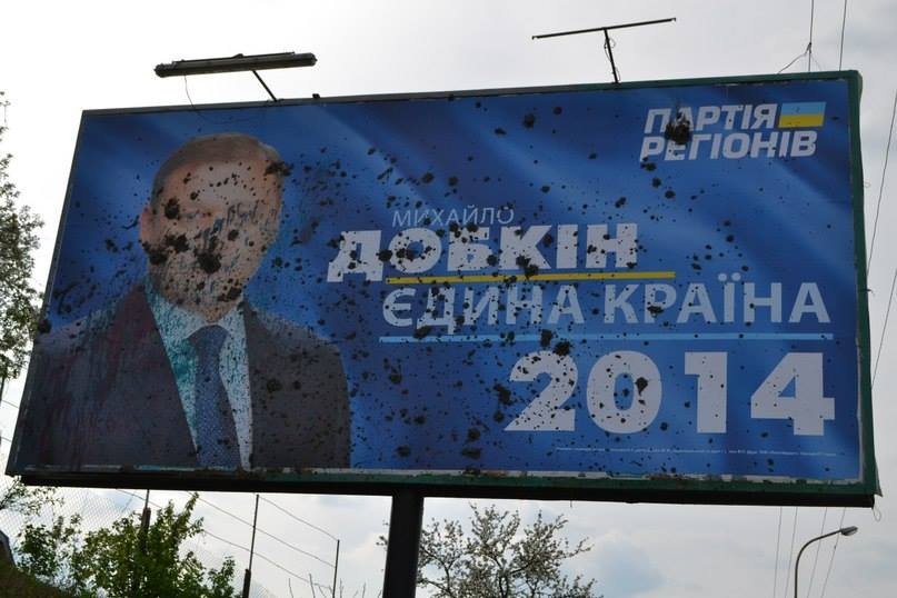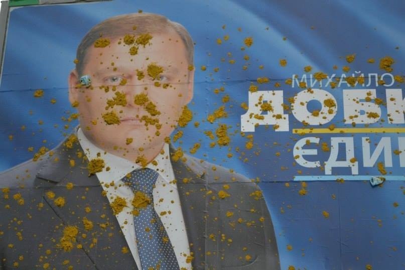 У Луцьку агітаційні білборди кандидата на пост президента регіонала Михайла Добкіна закидали зеленкою та багном.