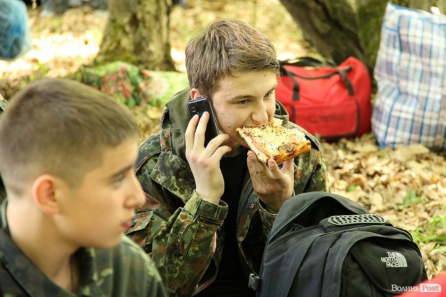 Тут у камуфльованій форми з наплічниками, спальними мішками, карематами і запасами провізії зібралася більша частина учасників. Решта – під’їдуть безпосередньо до місця дислокації.