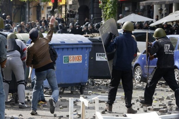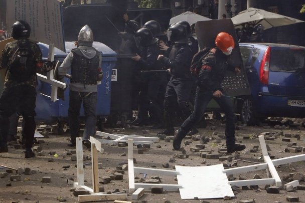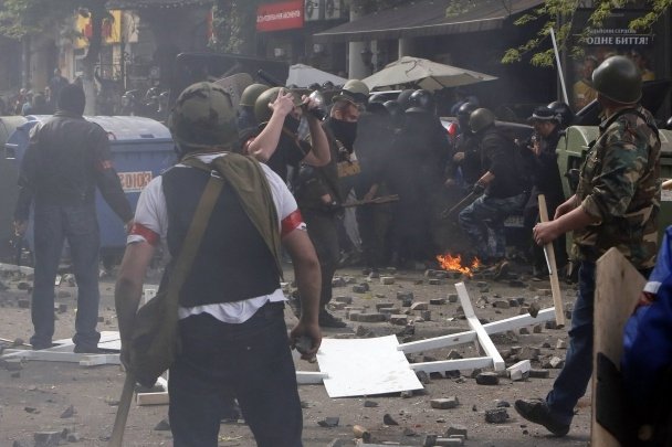 Раніше проросійські активісти напали на мирний мітинг за єдність України. В сутичках на вулиці Грецькій загинуло четверо людей, повідомили в міліції.