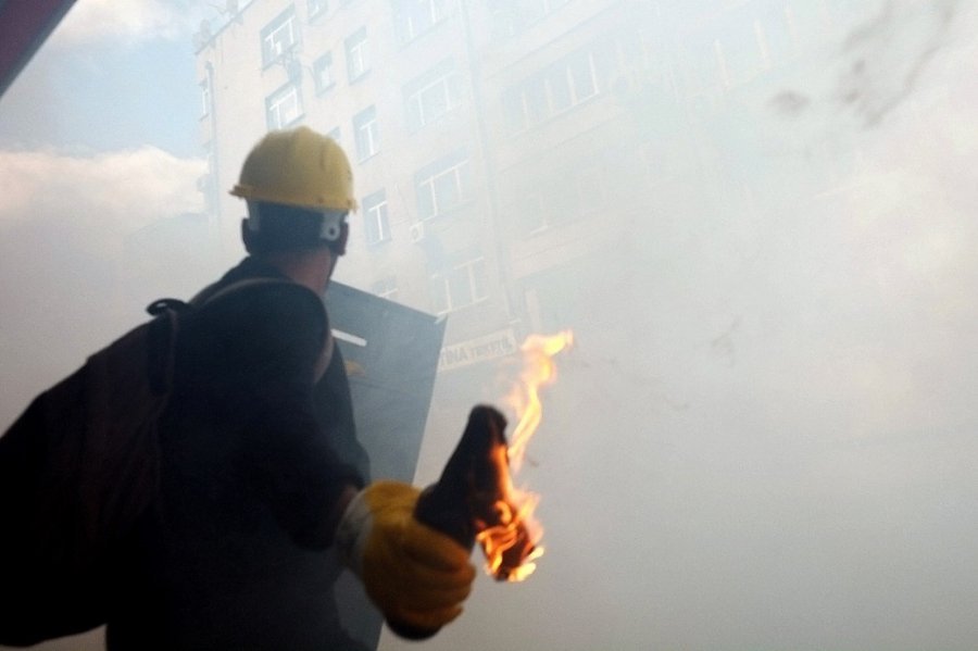 Поліція застосувала сльозогінний газ, водомети і гумові кулі для розгону демонстрантів. Ті відповіли градом з каменів, болтів і фаєрами.