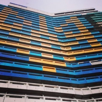 Зранку 3 травня перед хмарочосом, який стоїть уже понад 40 років, зібрались десятки хлопців та дівчат, які і втілили свій задум за допомогою фарби, - пише Inspired.