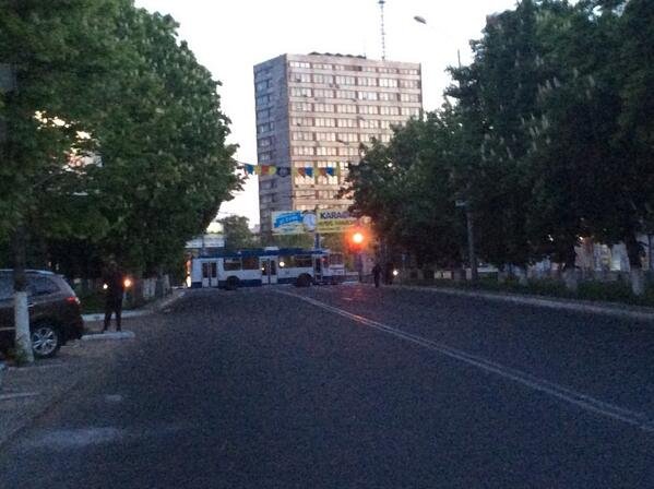 Інший користувач Twitter підтвердив цю інформацію та уточнив, що сепаратисти огороджують всі дороги, що прямують до будівлі міської ради. Про захоплення тролейбусів він написав, що раніше дороги блокували співробітники ДАІ, а зараз це роблять особи у камуфляжному одязі та у масках.