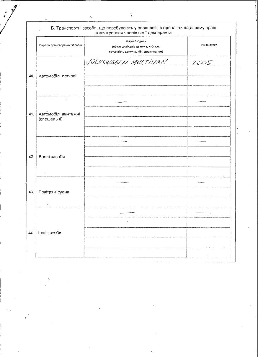 Також у членів сім’ї - транспортний засіб VOLKSWAGEN MULTIVAN 2005 року випуску.