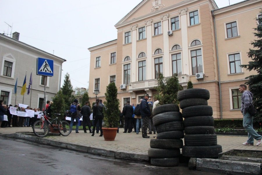 Люди організували мітинг біля стін міської ради, принесли гумові шини, які склали біля входу в мерію.