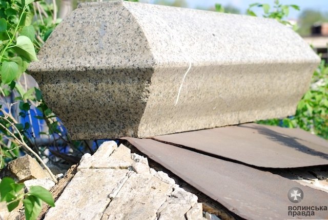«Нині у підніжжі склепу – величезна дірка. У склепі валяються пляшки та сміття», - зазначає Волинська правда.