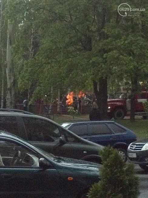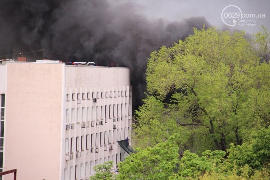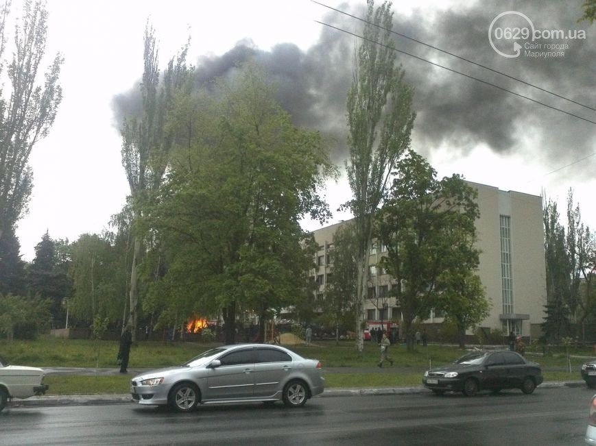 Біля будівлі Маріупольської міськради підпалили шини.