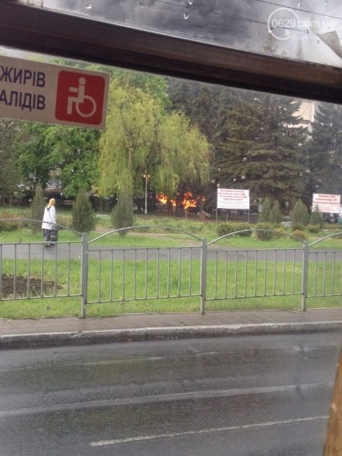 Терористи підпалили шини, які служать зміцненням для барикад. Рух транспорту на проспекті Леніна не зупинено. Пожежу оперативно локалізували. На місці працювали бригади ДСНС.