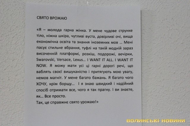 Фотовиставку «Свято врожаю», відкриту в Луцьку, автор просить сприймати у контексті останніх подій, які відбулися в Україні.