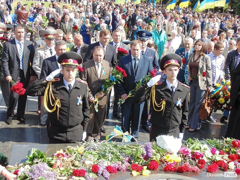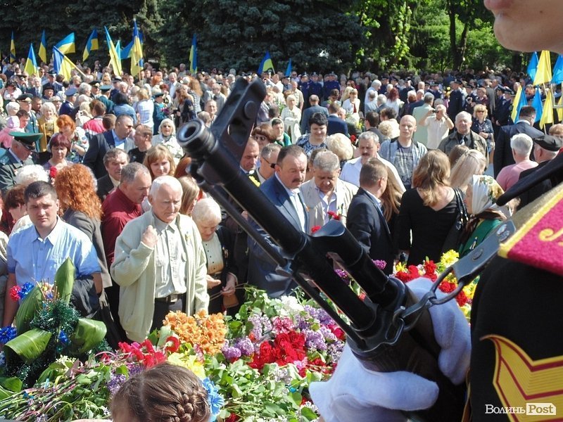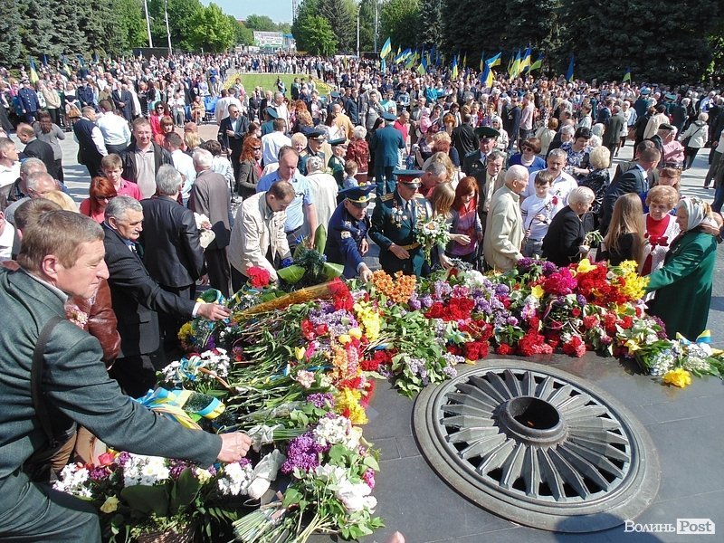 На Меморіалі слави у Луцьку відбувся мітинг-реквієм з нагоди Дня перемоги. у ньому взяли участь близько 1000 людей.