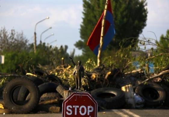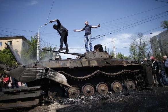 Також є знімок, як озброєний сепаратист розмовляє з жінкою, яка приїхала на скутері до КПП неподалік Слов'янська.