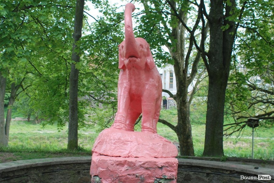 Фігура слоника, яка розташована в парку за Палацом учнівської молоді в Луцьку, вкотре "змінила" колір.