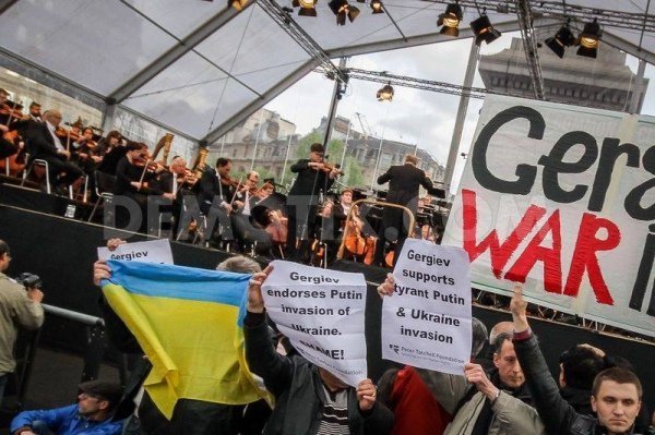 Українські активісти перервали концерт Лондонського симфонічного оркестру під диригуванням росіянина Валерія Гергієва на Трафалгарській площі в Лондоні.