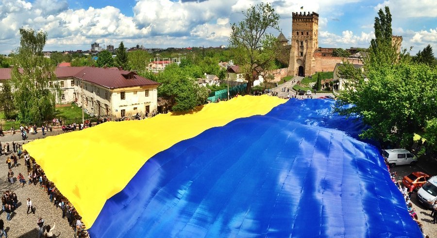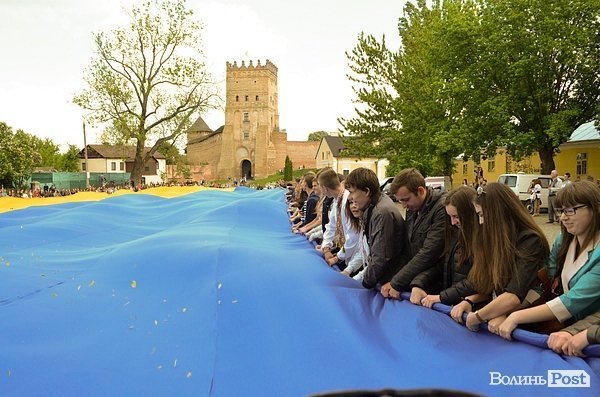 У Луцьку на Замковій площі розгорнули найбільший у світі прапор України, інформація про який входить в книгу рекордів Гіннеса. Він має розміри 60х40 метрів.