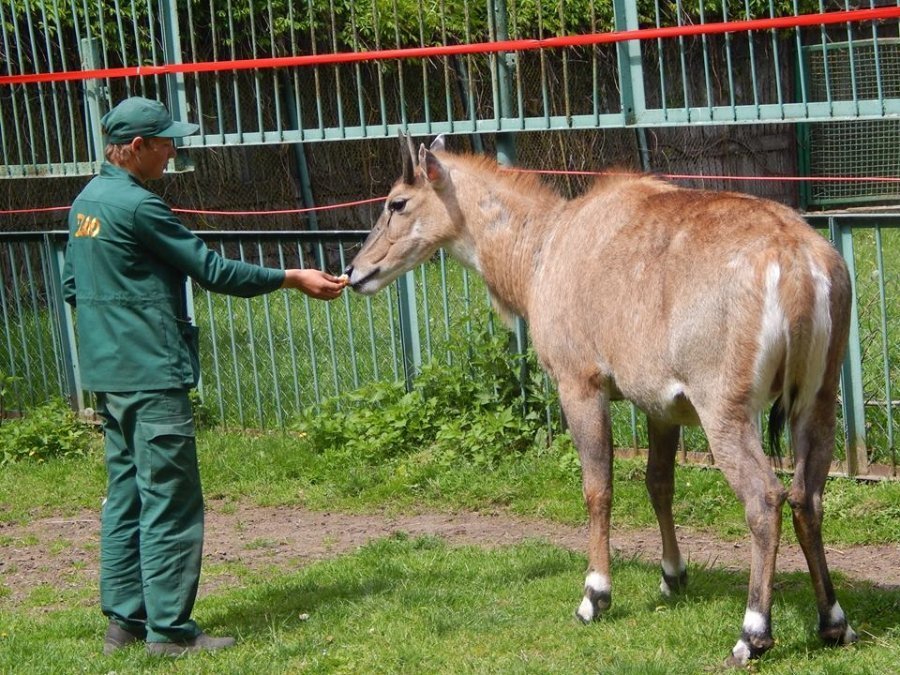 Самець антилопи нільгау ось уже кілька днів мешкає в луцькому зоопарку.