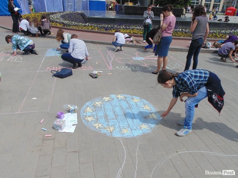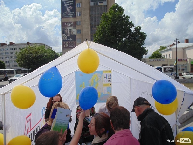 Для відзначення Дня Європи у центрі Луцька влаштували виставки народної творчості, конкурс малюнків та презентацію туризму у Польщі.
