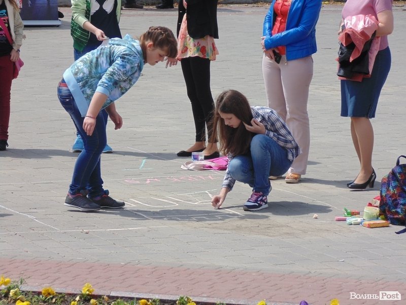 Для дітей влаштували конкурс малюнків крейдою на тему "Неподільна Україна - Безпечна Європа". Всіх учасників нагородили заохочувальними призами.