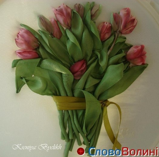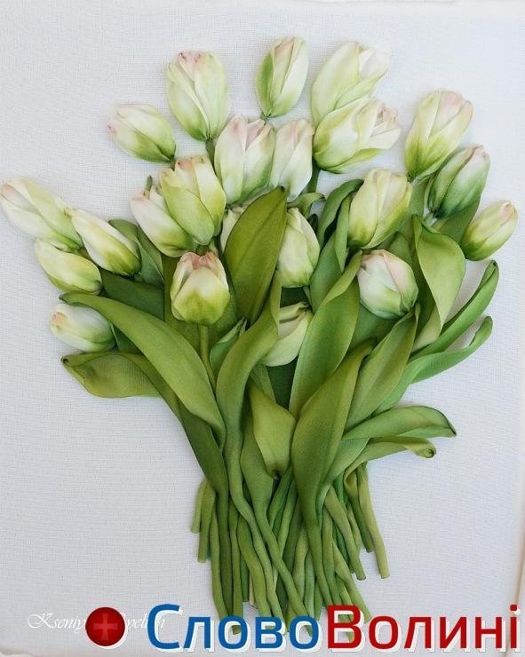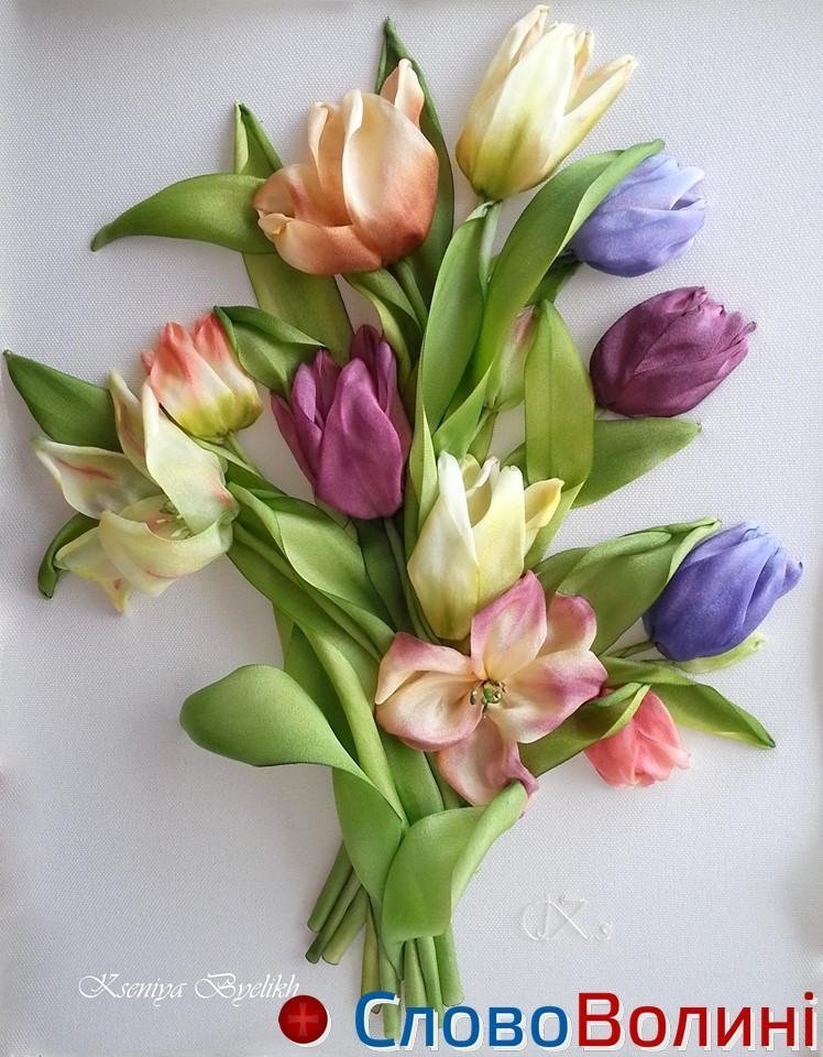 Ксенія Бєлих зізнається: найбільше любить викладати тюльпани і навіть вигадала власний метод вишивання стебел.