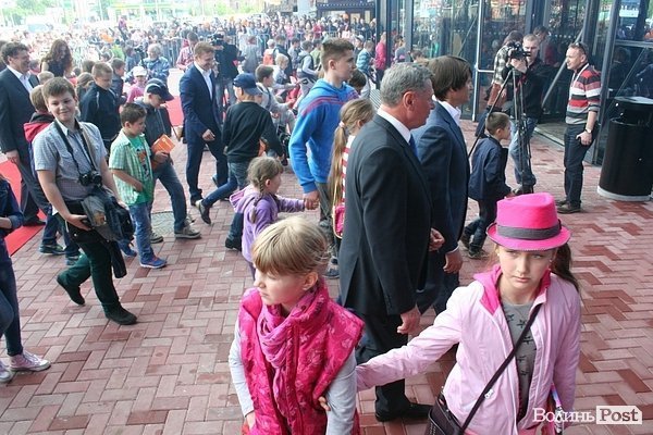 Стрічку перерізав разом із двома десятками дітей Ігор Єремєєв. Саме дітей першими запустили крізь нововідчинені двері. Далі запускали всіх інших. Охорона організувала пропуск так, щоб не було тисняви.