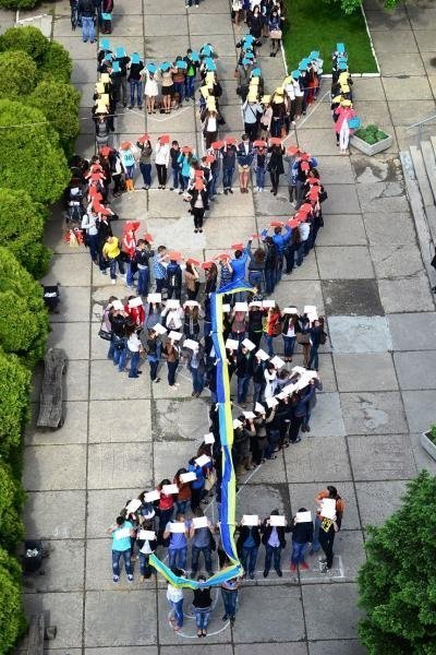 Під час флешмобу більшість студентів факультету вибудували патріотичними кольорами слово «Ми», серце та символ матфаку: величезну суму й інтеграл, який було утворено національними стягами біля лабораторного корпусу.