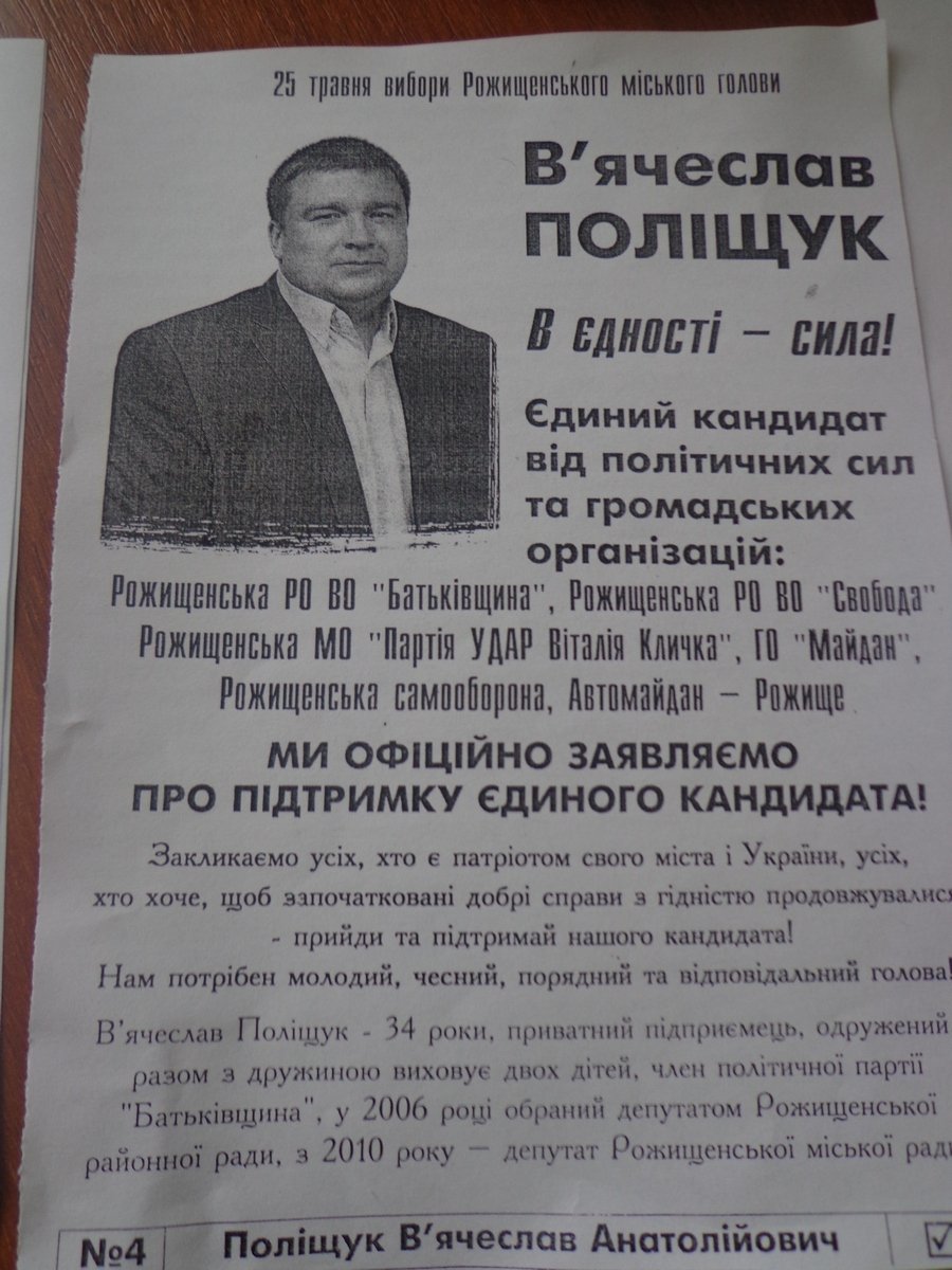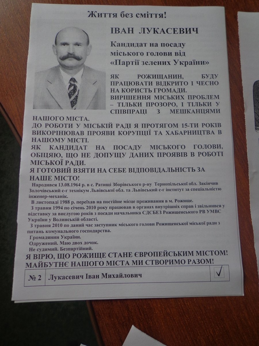 Нагадаємо, що мешканці районного центру Волині м. Рожище 25 травня окрім майбутнього Президента обиратимуть ще й міського голову. За цю посаду вирішило поборотись 7 кандидатів. Причиною цих позачергових виборів стала трагічна смерть попереднього міського голови Афгана Алієва.