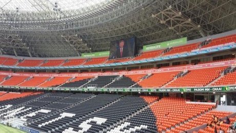 На "Донбас-Арені" вивісили прапор України і показали звернення Ахметова.