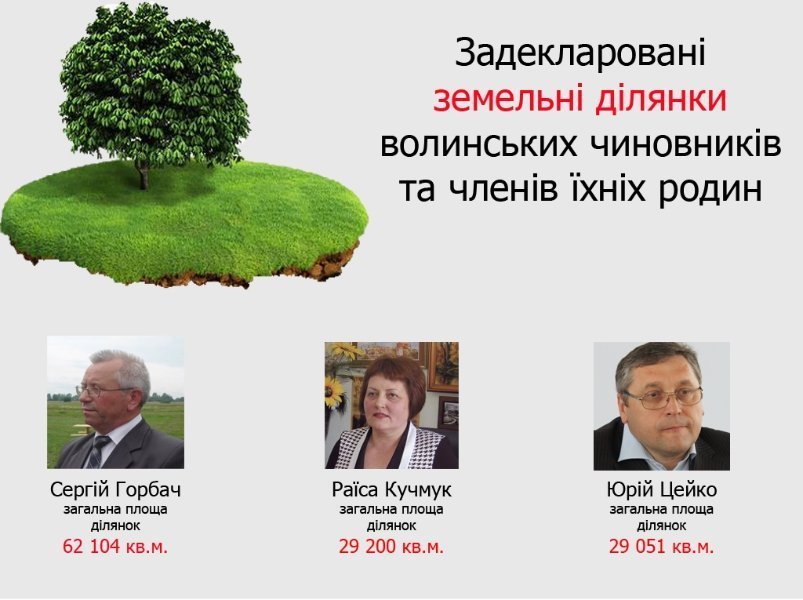 Найбільшим земельним магнатом серед волинських можновладців виявився, як і належить, начальник Державної інспекції сільського господарства у Волинській області Сергій Горбач. На нього та членів родини записано понад 6,2 га землі.