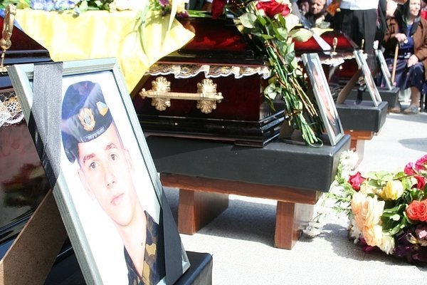 У Свято-Троїцькому соборі відспівали трьох військових 51-ої механізованої бригади, які загинули в результаті обстрілу під Волновахою.