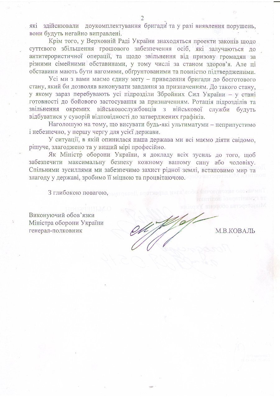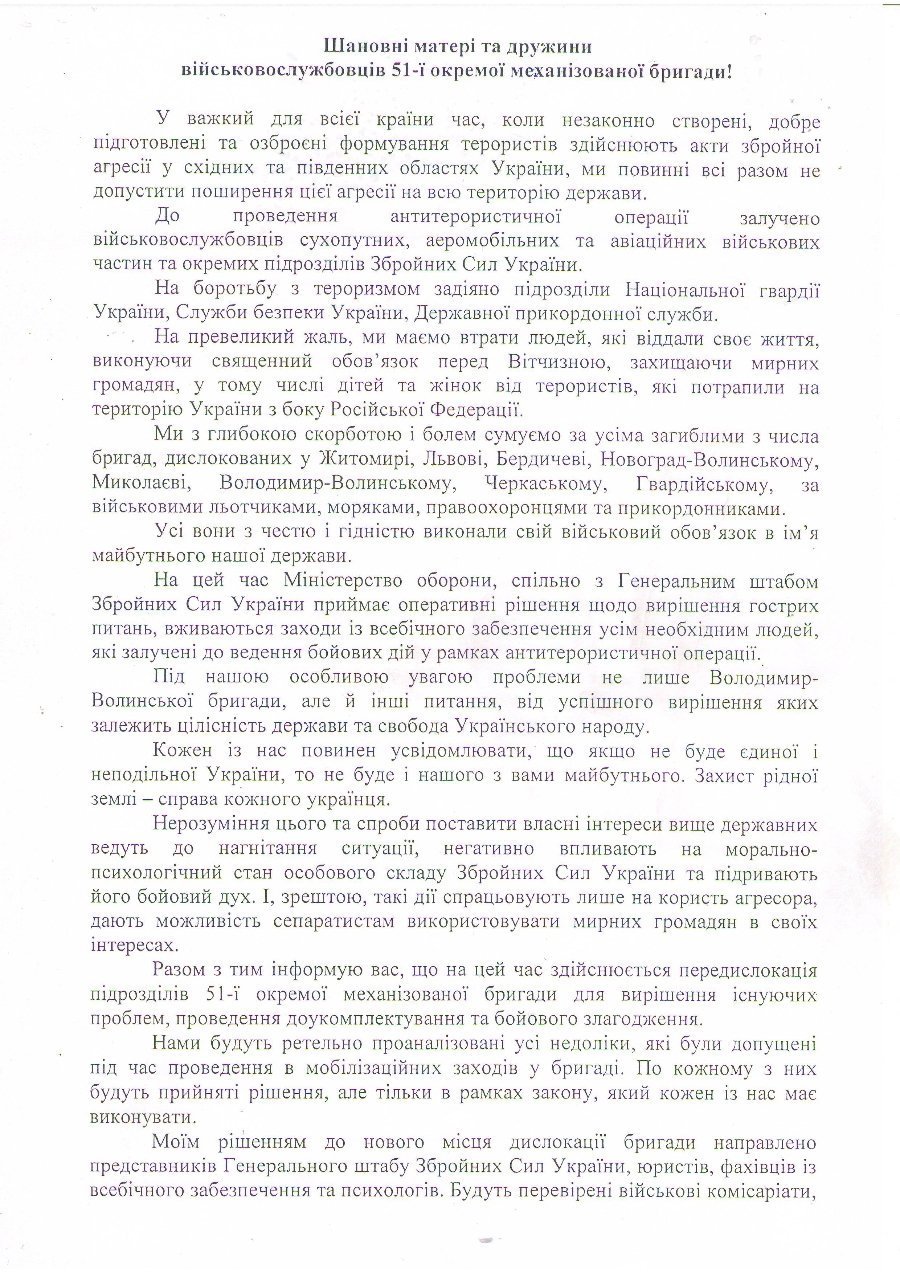 Після звернень від депутатів в.о. Міністра оборони Михайло Коваль зробив офіційну заяву - 51-у механізовану бригаду передислокують в Миколаїв, ротація батальйонів вже розпочата (див. документ нижче).