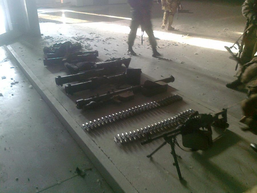 "Український спецназ зібрав зброю, що залишилася від терористів на одному з поверхів. Терористів багатьох вже й немає, а зброя залишилася. Не наша зброя - завезена з Росії: серійні номери, роки випуску, специфічні моделі", - заявив міністр.