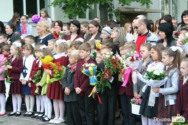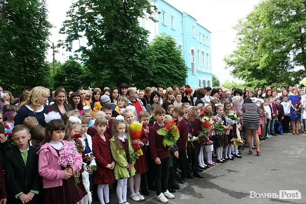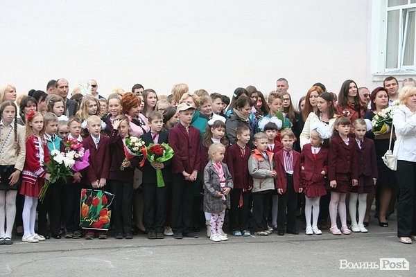 У школі №1 міста Луцька батьки та випускники зібралися на урочисту лінійку.