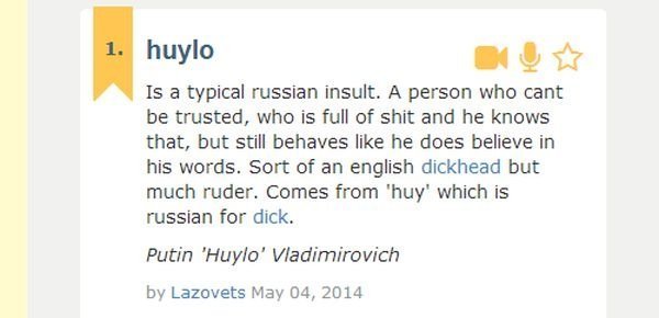 Американський он-лайн словник сленгу Urbandictionary згадав голову РФ Путіна в статті про слово "huylo".