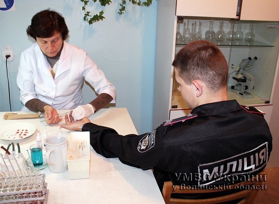 За ініціативи керівництва УМВС України у Волинській області на базі обласної станції переливання крові відбувся незапланований день донора.