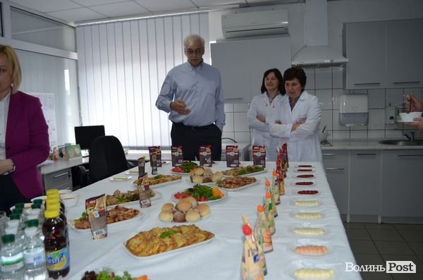 По завершенню екскурсію заводом у Торчині Пустовіта запросили на дегустацію продуктів, які продукує ВАТ «Волиньхолдінг».