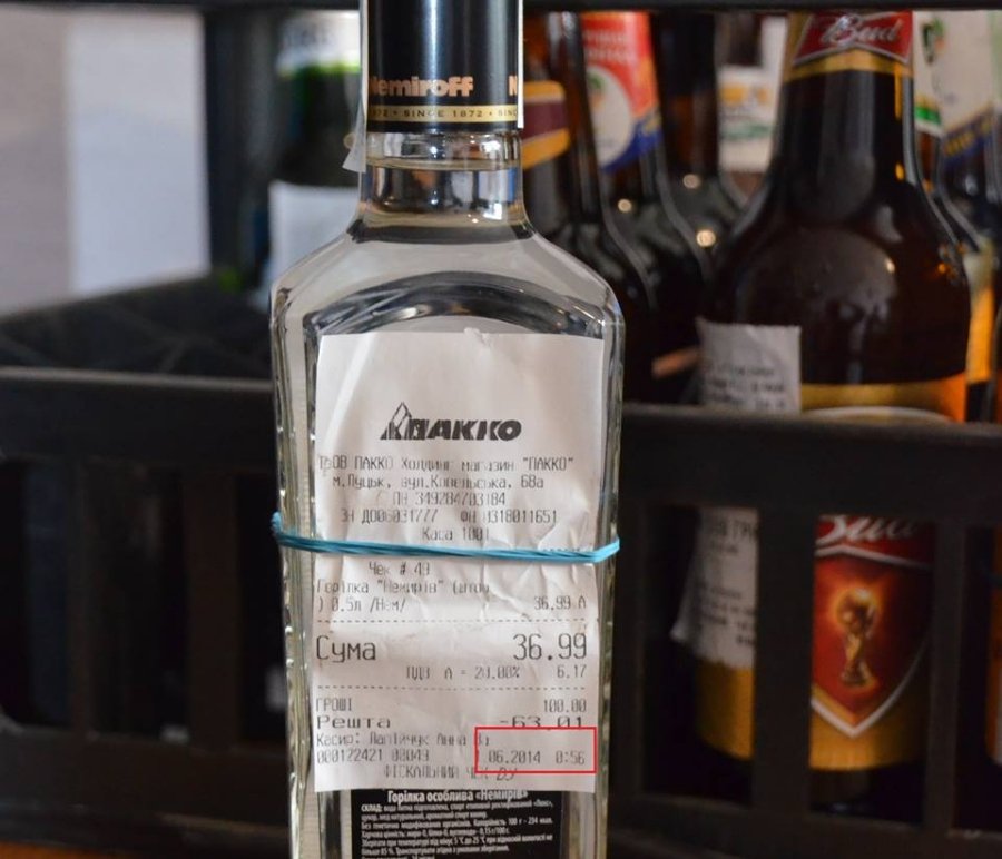 Аби довести факт порушення, до кожної покупки активісти додали чек, де значиться дата й час продажу спиртного.