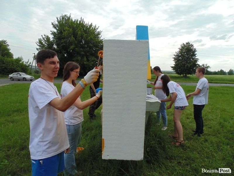 У селі Лище Луцького району активісти розфарбували в'їздний знак у патріотичні кольори.