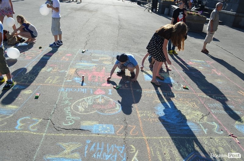 Поряд влаштували конкурс малюнків на асфальті для дітей.