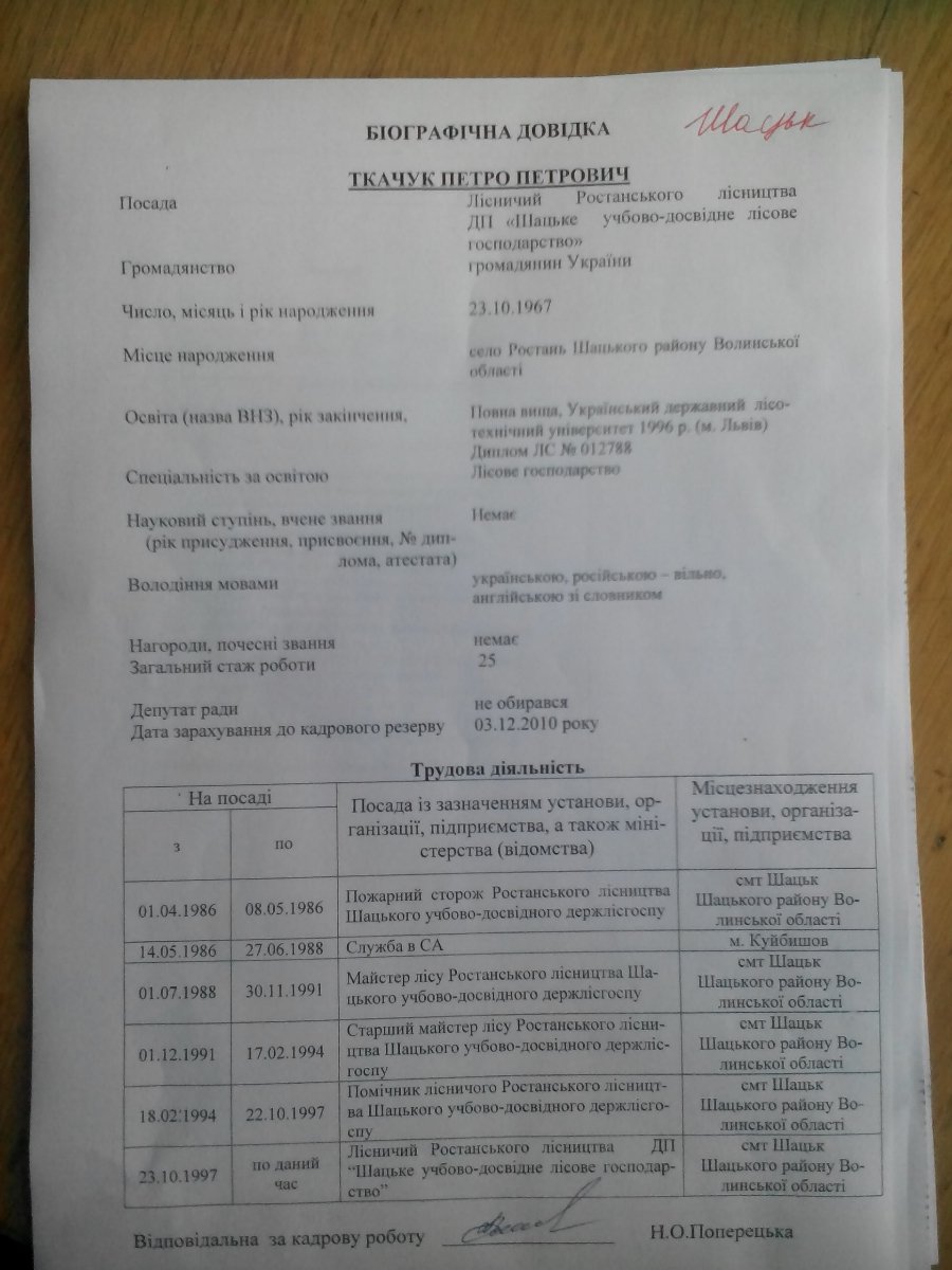 На посади начальників держлісгоспів зокрема претендують лісничий Ковельського лісництва Микола Мельник, головний лісничий Костопільського військового лісгоспу у Рівненській області Віктор Максимчук, директор ТзОВ «Лістрансбуд» Юрій Ребар та лісничий Ростанського лісництва ДП «Шацьке учбово-дослідне лісове господарство» Петро Ткачук.
