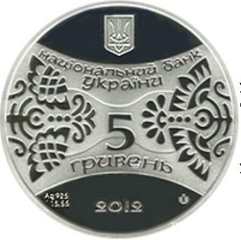 Внизу розташований рік карбування монети – 2012, а також позначення металу, його проби – Ag 925, маси в чистоті – 15,55 та логотип Монетного двору НБУ.