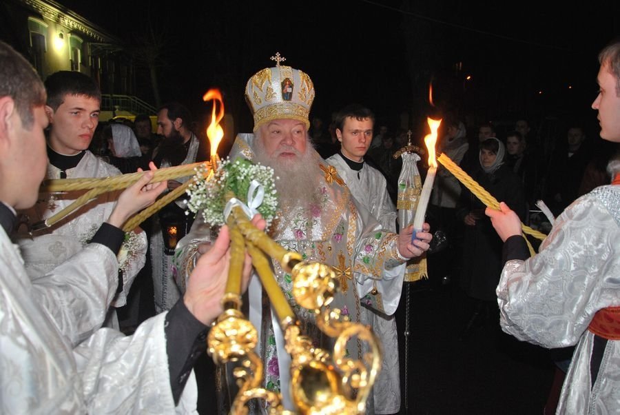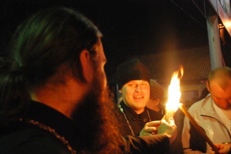 Цю велику православну святиню привезли до Луцька на початок Пасхальної Божественної Літургії. Вогонь зустріли православні лучани на чолі з митрополитом Ніфонтом.
