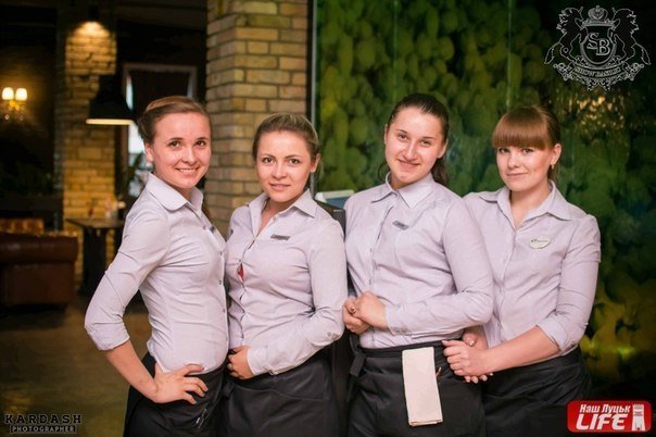 В офіціантки чудовий бюстгалтер саме пасує під колір форми! ха ха ха
