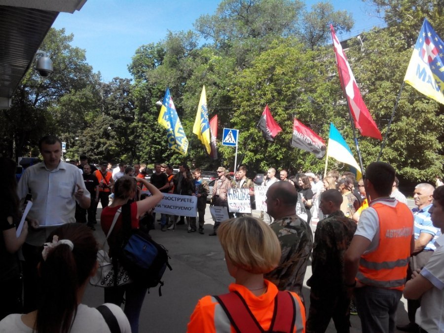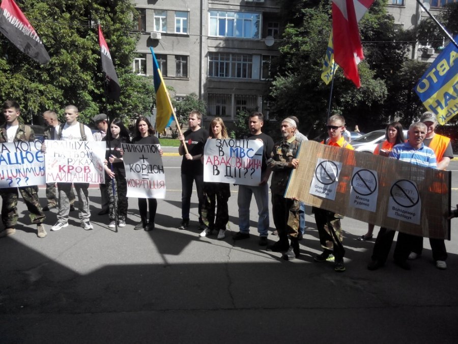 Біля будівлі МВС у Києві протестують "Правий сектор" і "Самооборона" Волині, які вимагають звільнити заступників начальника УМВС в Волинській області.