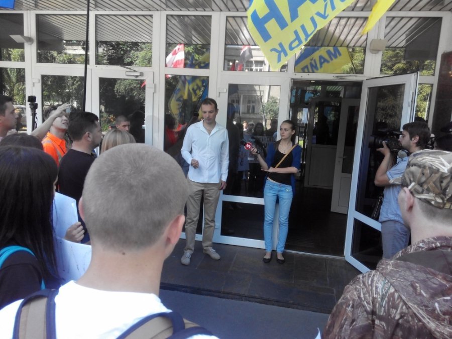До протестувальників вийшов начальник відділу взаємодії з громадськістю. Він взяв у них копію звернення. Але протестувальники зазначили, що до тих пір поки до них з офіційним роз'ясненням не вийдуть міністр або заступник міністра вони не підуть.