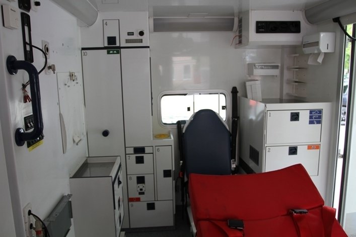 Головний лікар відзначив, що просторий салон автомобіля може вільно умістити хворого та кількох медпрацівників, для цього створені всі умови – зручні м’які крісла, безліч шухляд та шаф для зберігання ліків, перев’язочних матеріалів та іншого начиння. Є можливості підключення реанімаційного обладнання, кисневих масок, крапельниць, вбудована містка холодильна камера.
