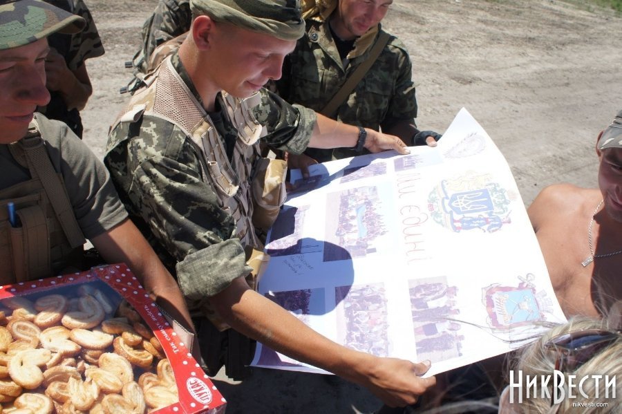 Солдати були бадьорі, посміхалися, запитували про останні новини, розповідали про своїх рідних краях і запрошували в гості, коли бойовиків виб'ють зі Сходу країни.