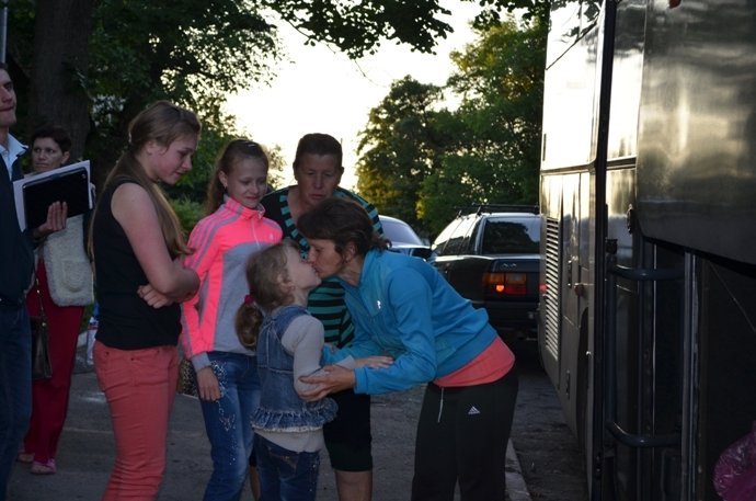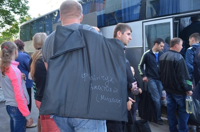 Зі сльозами на очах, тримаючи в руках бронежилети для двох синів прямував до автобуса горохівчанин, поруч юрмилися матері з чорними торбинами на яких акуратно були виведені прізвища синів.