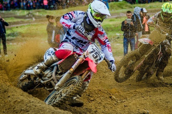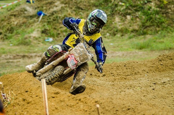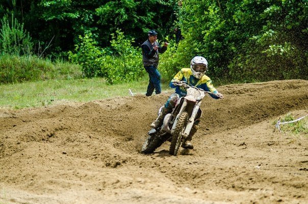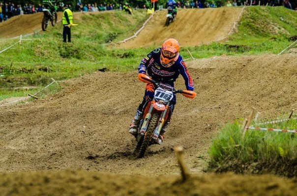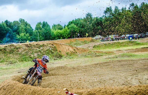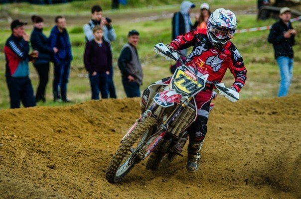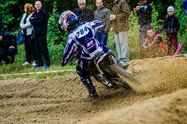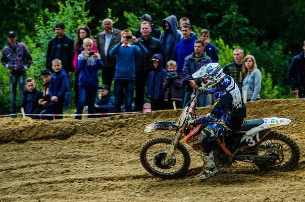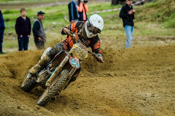 "Трасса была очень классная. После дождя она разбилась. Опыт. Тренировки. Бег и физкультура. Это все помогает. Мой тренер Владимир Владимирович Гук. Занимаюсь мотоспортом я уже 8 лет. Начинал с 50 см. куб. сейчас пересел на 85 кубов", - говорить мотокросмен.