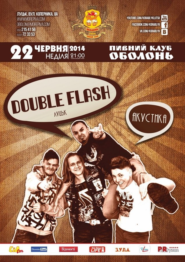 А 22 червня в "Кораблику" - акустичний концерт гурту "Double Flash" (Луцьк).