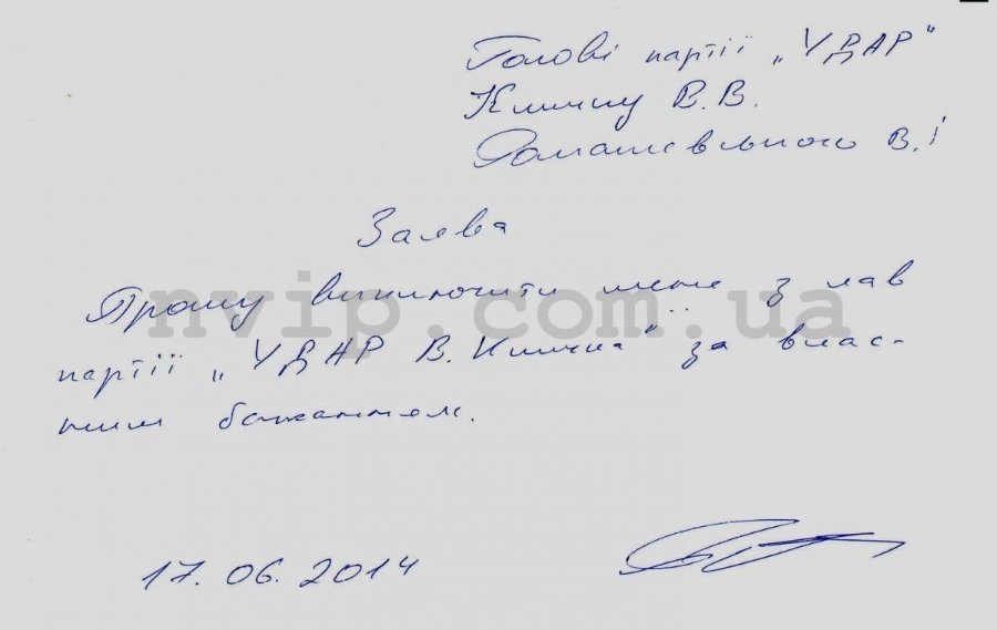 Голова Нововолинської організації УДАРу написав заяву про вихід із лав партії.