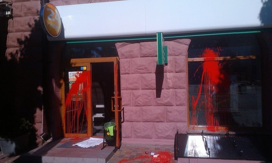 Фото заляпаного банку опублікував у Facebook Михайло Бабенчук.